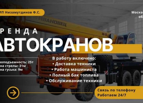 Предлагаем в аренду Автокран для ваших работ с водителями россиянами.